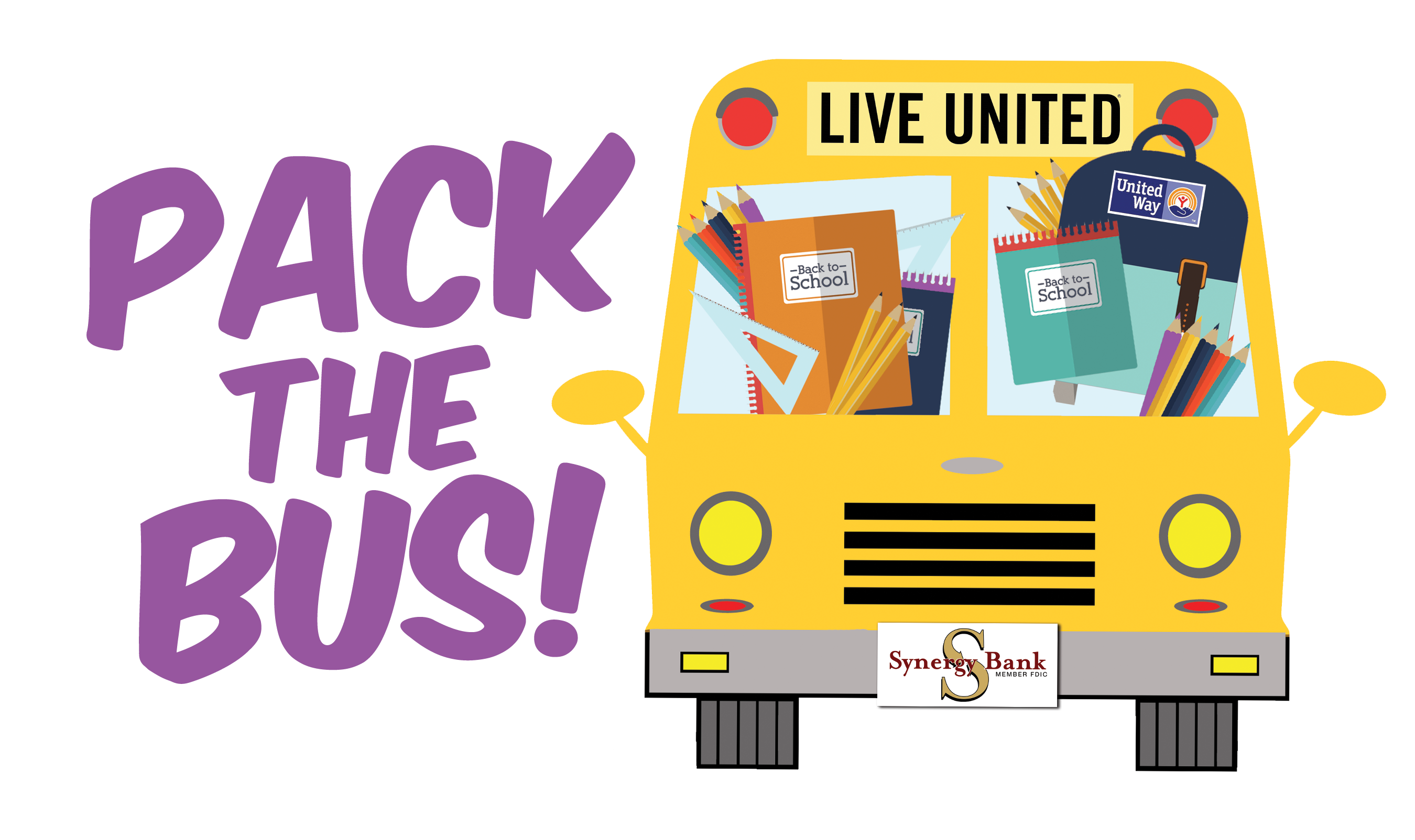 United Way and Synergy Bank will be collecting school supply donations at Bayou Industrial Group’s July 12 Luncheon as part of the annual “Pack the Bus” school supply drive benefitting students in the Lafourche and Terrebonne school districts.